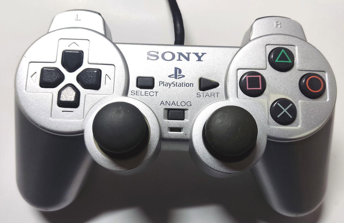 Joystick "Dualshock 2" original para consola PlayStation 2. Modelo "Satin Silver". Clase "H". Reacondicionado. Estado estético impecable y funcionando correctamente.