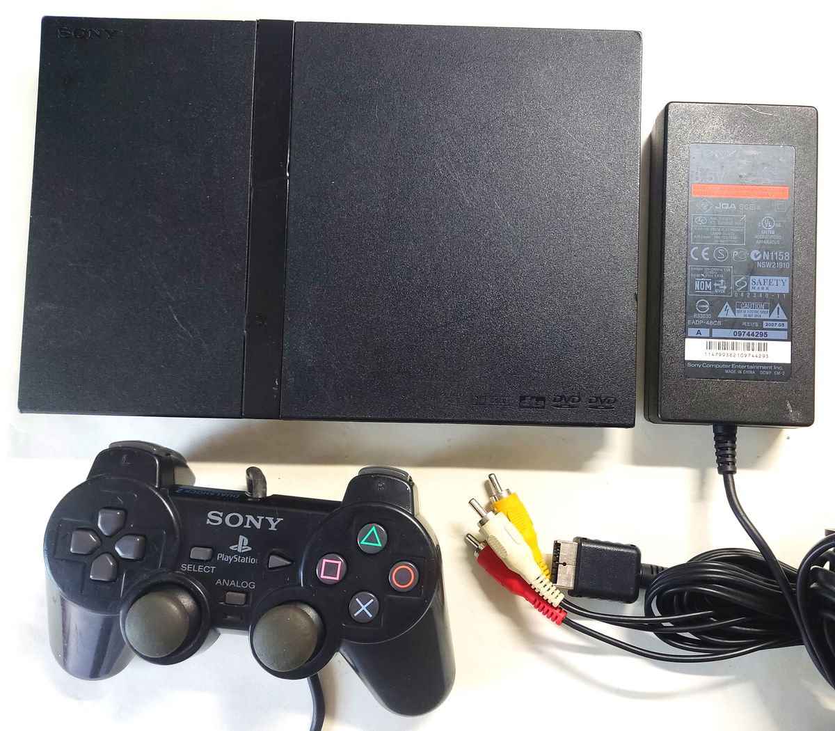 Consola PlayStation 2 Slim con lente impecable y chipeada. Incluye Dualshock 2 Original clase "A", Trafo Original y Cables A/V Originales. Estado estético excelente y funcionando correctamente.